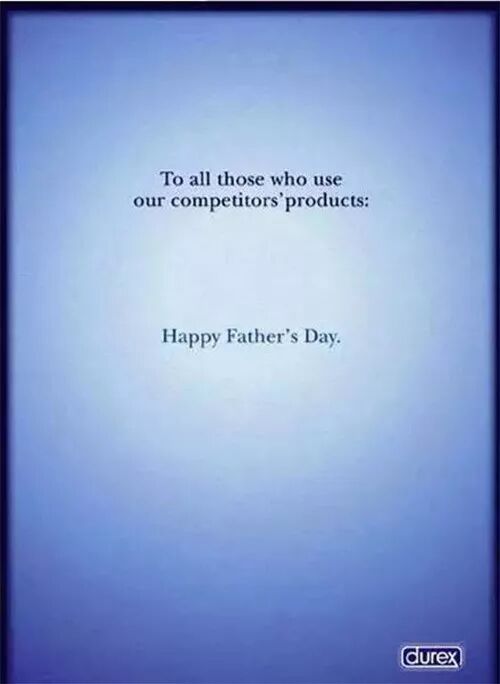 比如杜蕾斯的玩法就相当高明。在父亲节的时候,杜蕾斯推出一个海报: